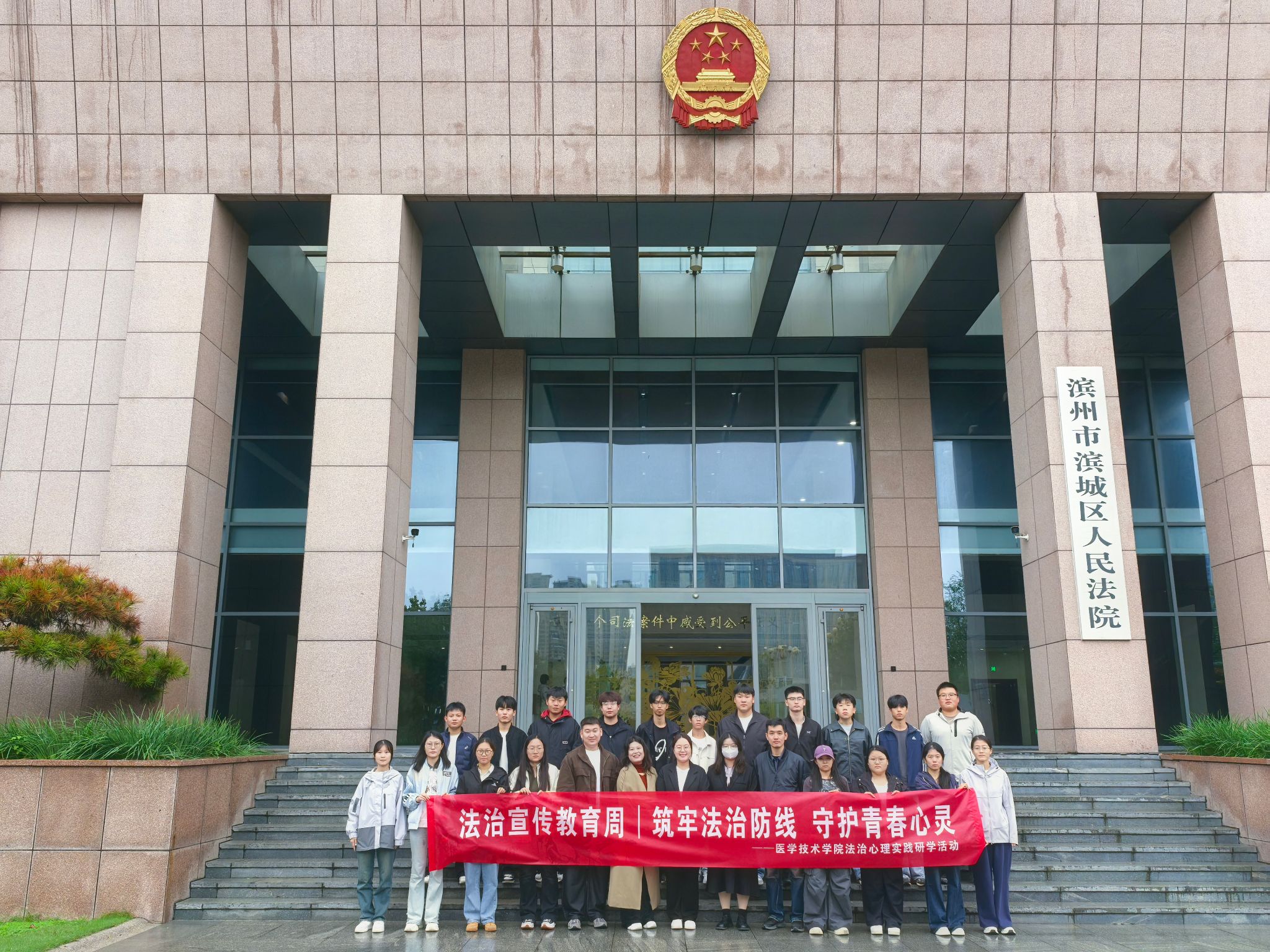 为深入推进法治宣传教育,增强师生法治观念与心理健康素养,10月10日,医学技术学院组织师生代表前往滨城区人民法院,开展以“筑牢法治防线,守护青春心灵”为主题的法治心理实践研学活动。此次活动是学院法治宣传教育周系列活动的重要组成部分。